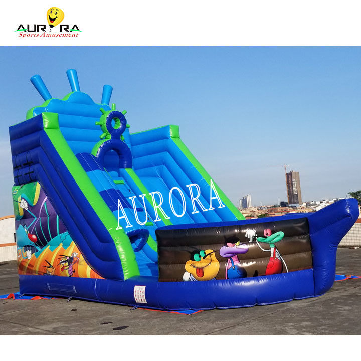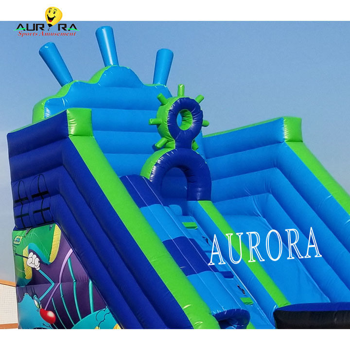 파란 복선 썰매를 가진 상업용 부풀이 슬라이드